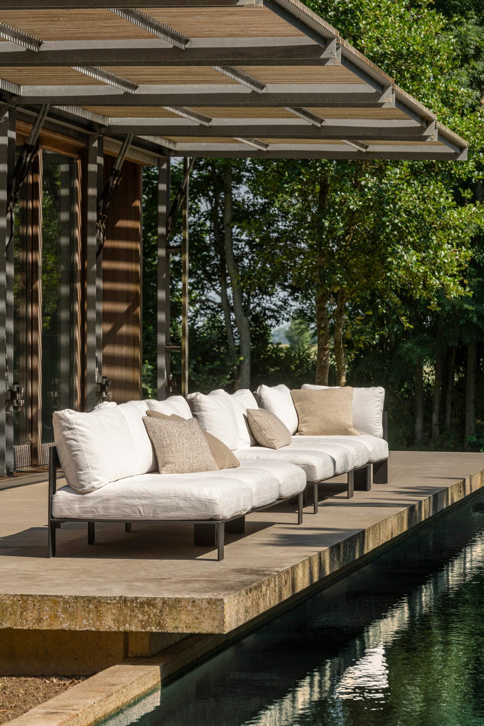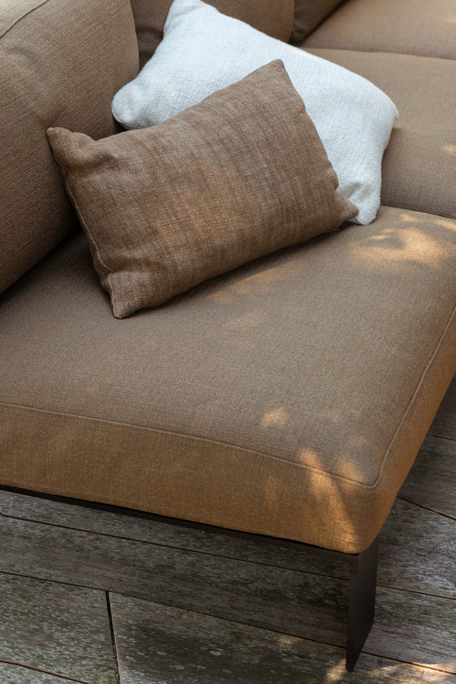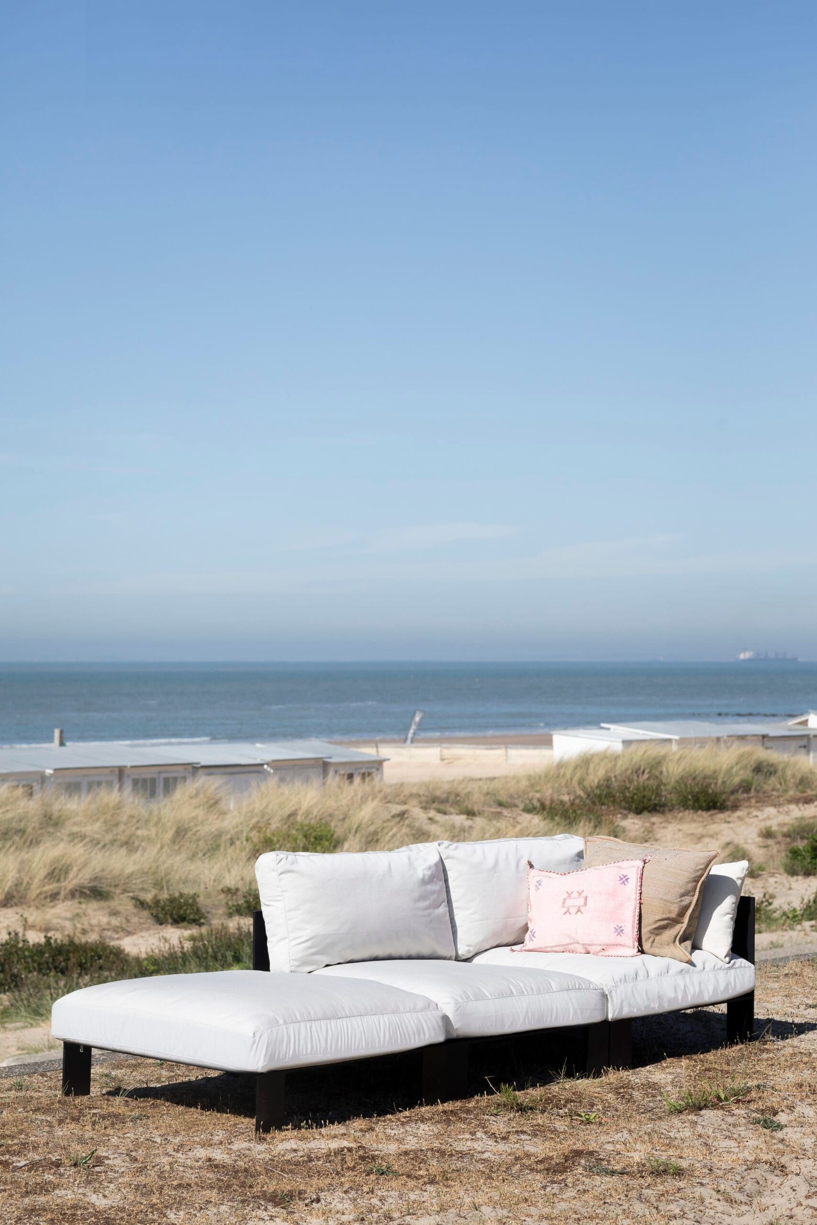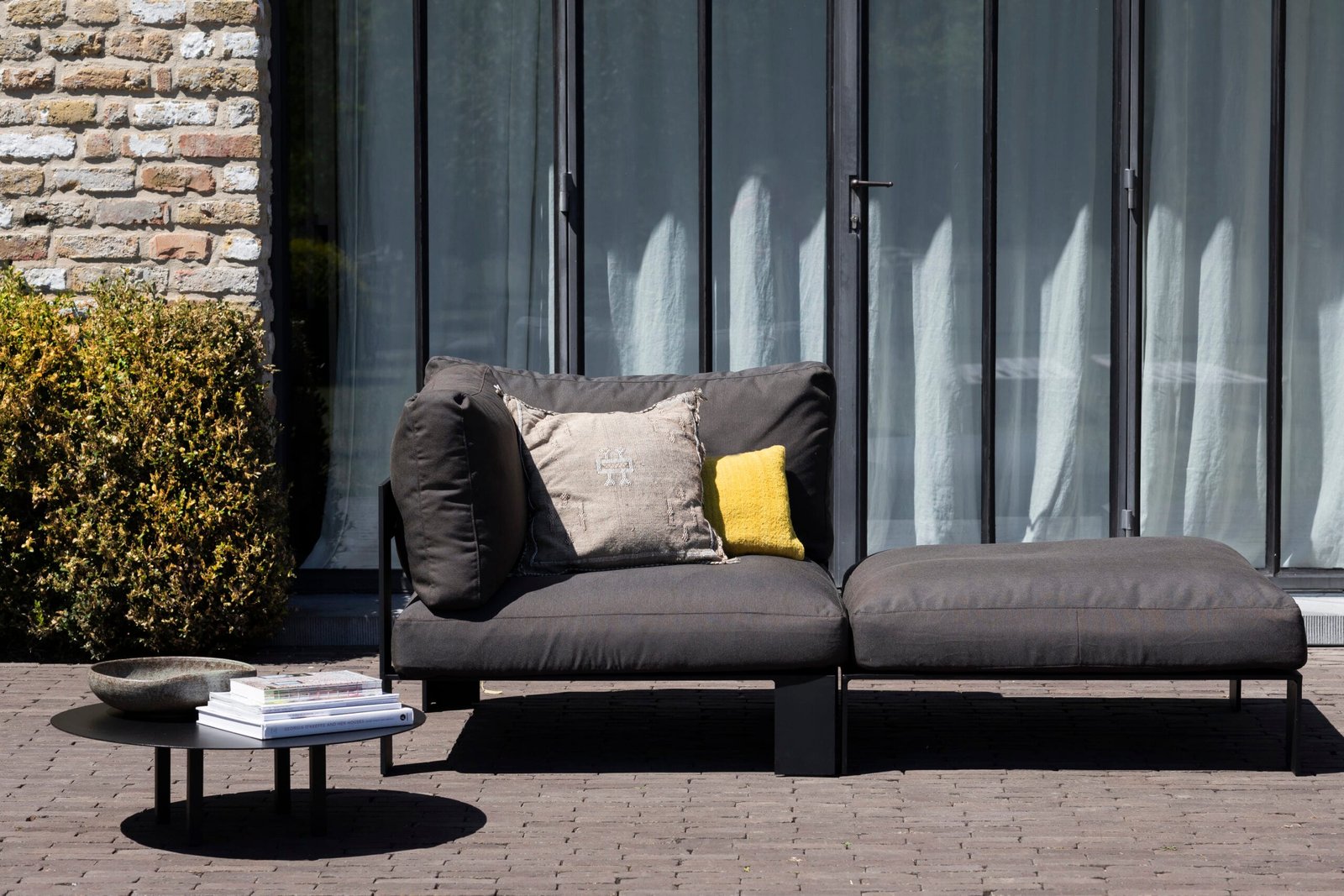 Vandaag bestaat de collectie uit lichtgewicht, zwarte aluminium frames met zachte kussens in een fawn-tint: geschikt voor zowel binnen als buiten, én eenvoudig te verplaatsen. Door verschillende elementen te combineren, creëer je moeiteloos je eigen lounge-eiland, exact afgestemd op de beschikbare ruimte en sfeer.