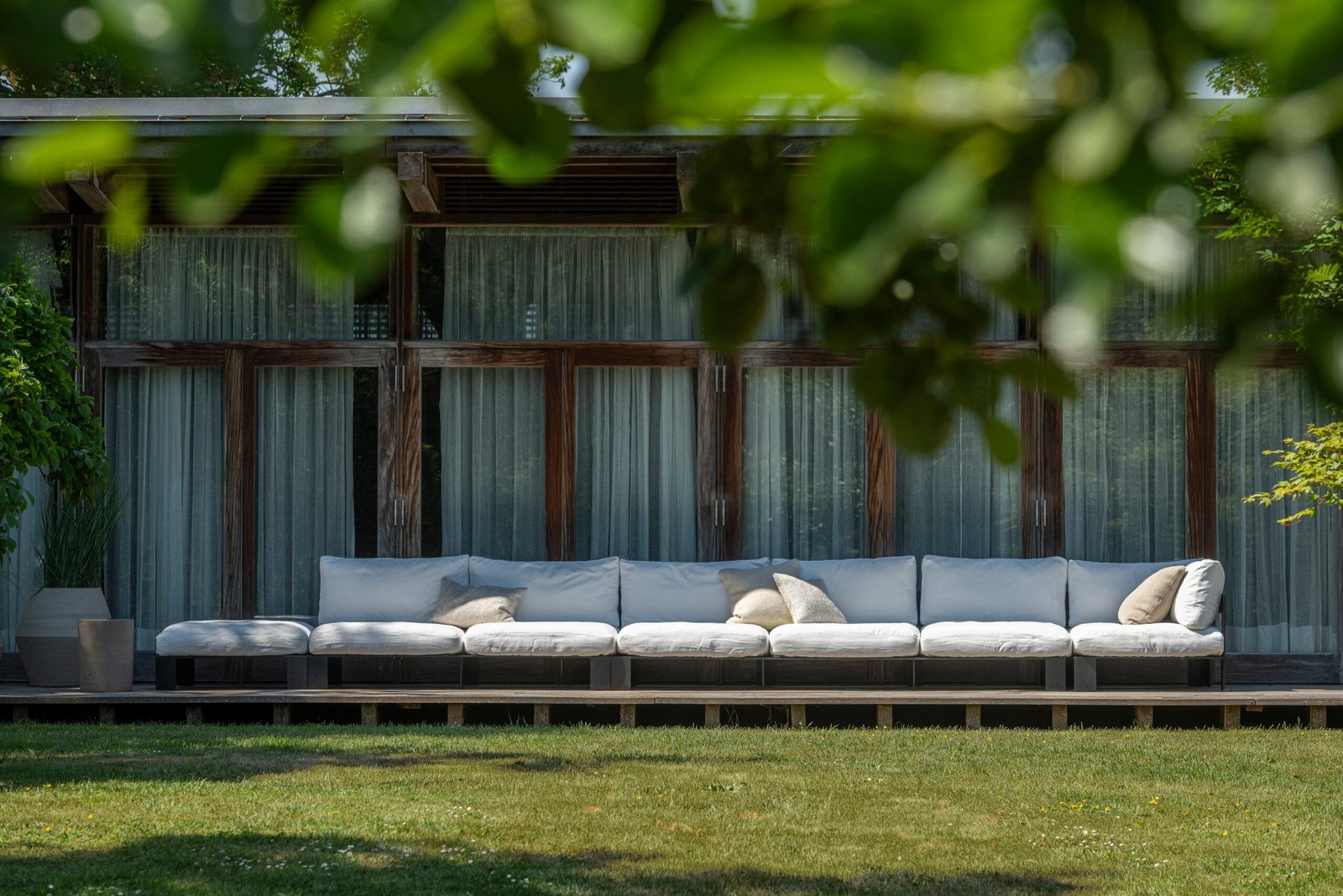 De kracht van de Bea Mombaers collectie Serax schuilt in het ogenschijnlijk eenvoudige ontwerp: een zwevend zitvolume, een volledig weggewerkt frame en royale outdoor kussens die uitnodigen tot lang tafelen, ontspannen en het versmelten van binnen- en buitenleven.
