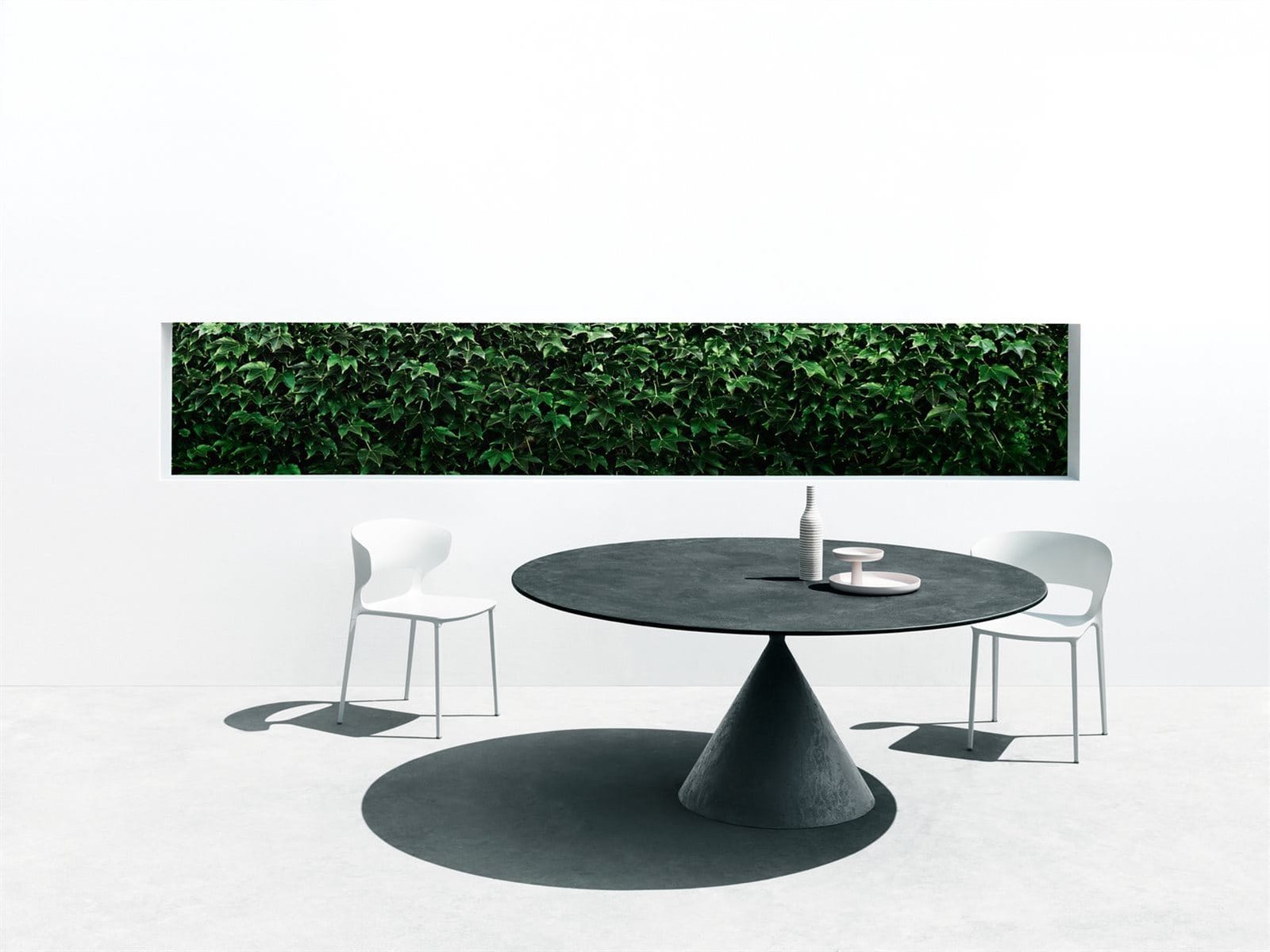 Clay is meer dan een tafel: het is een sculptuur in je interieur of buitenruimte. De strakke, vloeiende vormtaal volgt Desalto’s filosofie van pure proportie, harmonie en technische beheersing. De voet is vervaardigd uit rigide polyurethaan, beschikbaar in subtiel gelakte of met de hand gespatterde textuurafwerkingen. Het resultaat is een statement piece dat tegelijk minimalistisch, krachtig en tijdloos is.