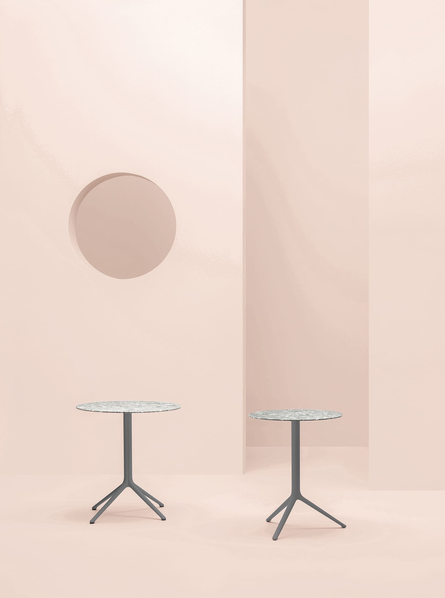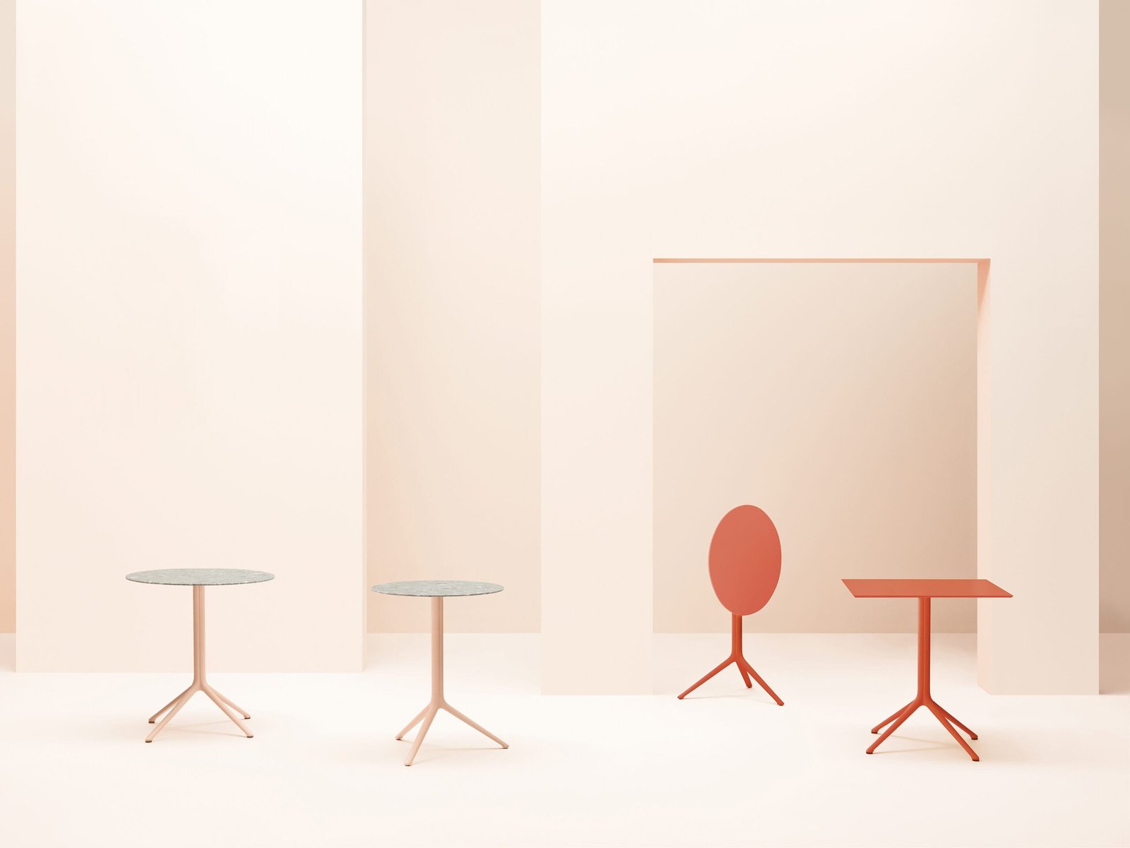 Alle modellen zijn combineerbaar met tafelbladen in verschillende afmetingen en afwerkingen, waardoor de collectie perfect kan worden afgestemd op zowel kleine terrassen als grotere projectomgevingen.