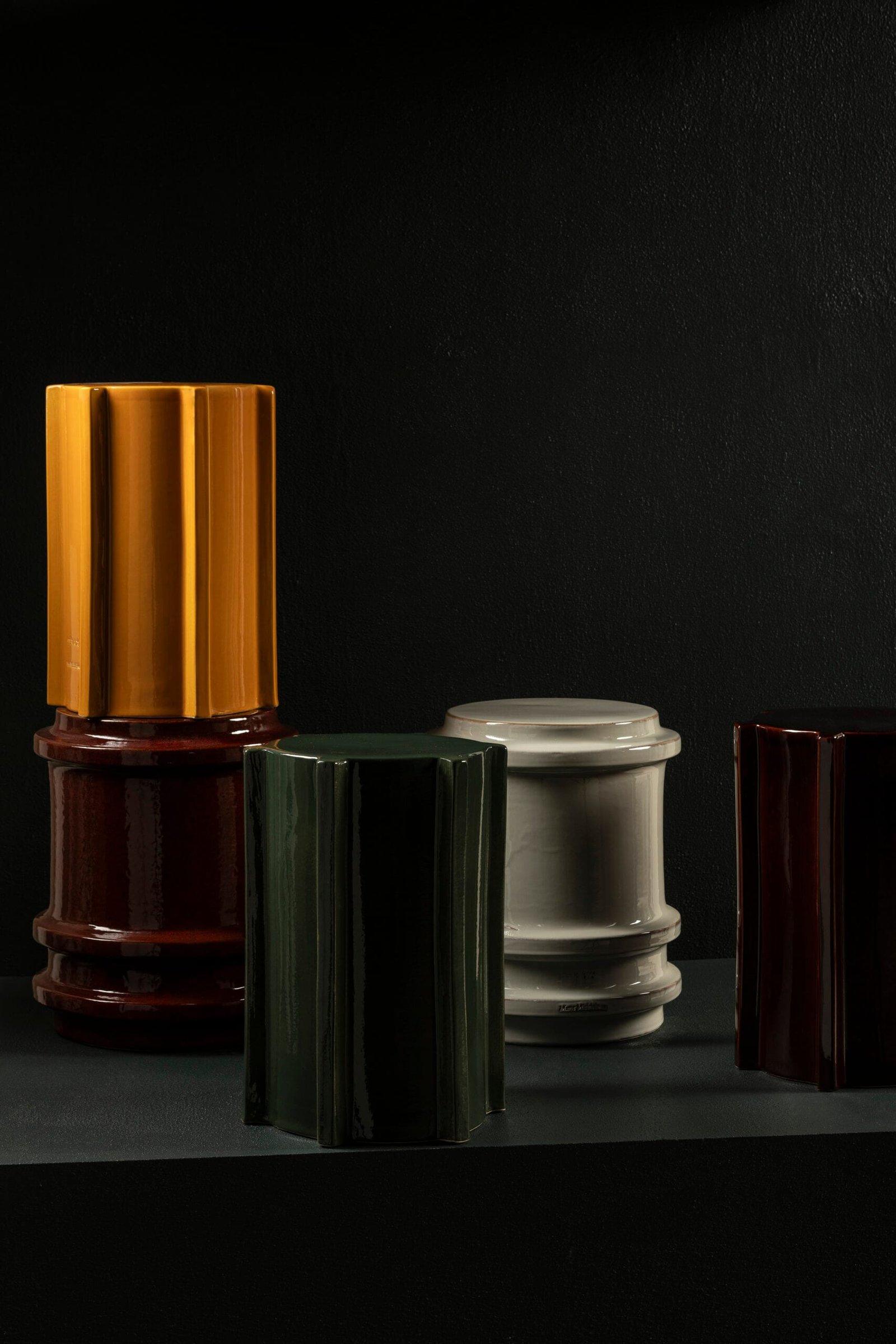 De Pawn collectie Serax bestaat uit cilindrische en kubusvormige ontwerpen die zowel esthetisch als praktisch inzetbaar zijn. Elke tafel is meer dan een functioneel object; het is een klein kunststuk dat sfeer brengt in elke ruimte.