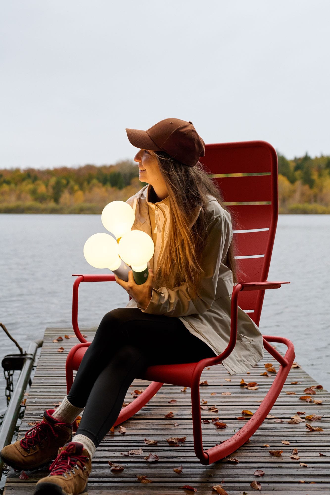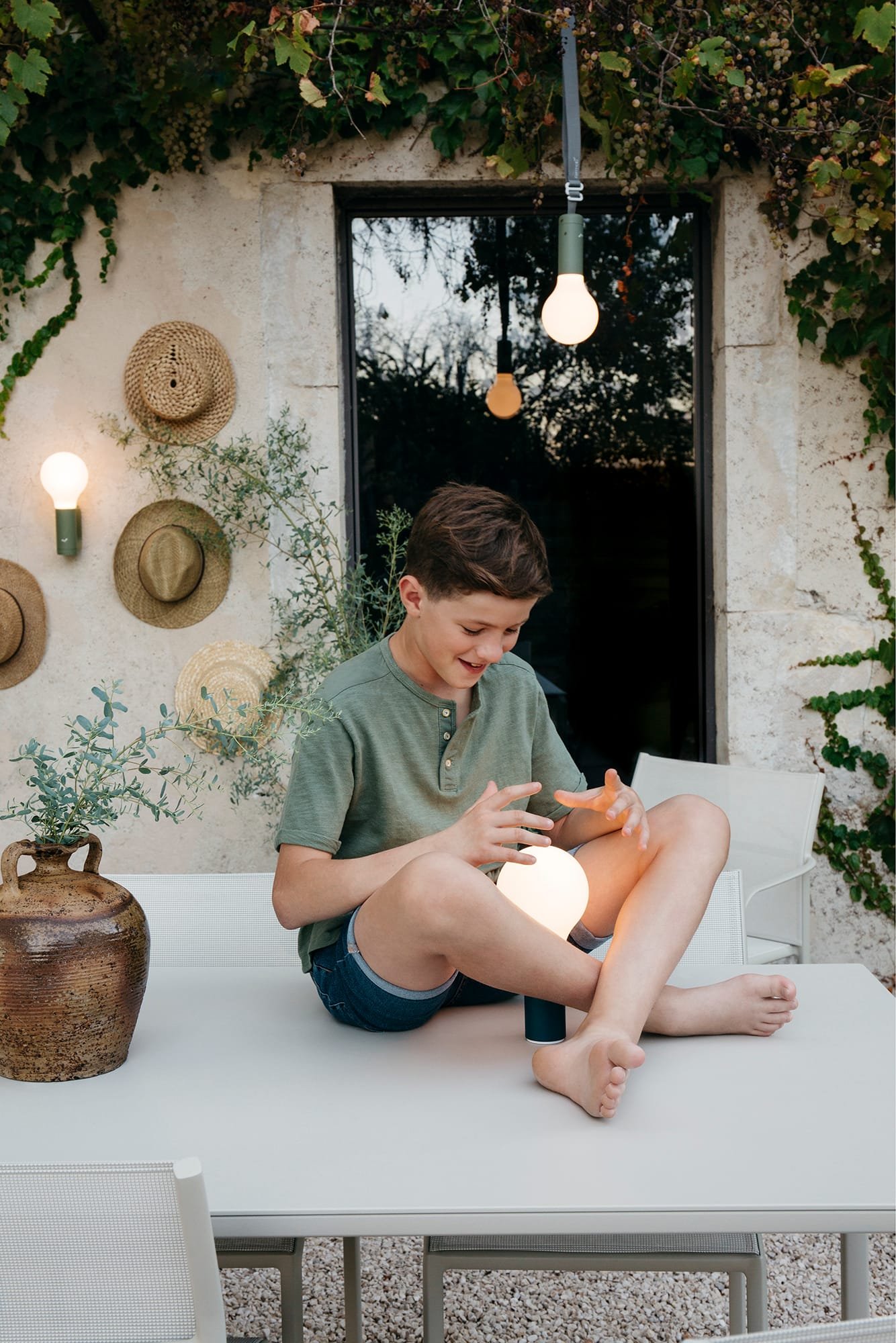 Aplô collection Fermob past zich aan jou aan. Zet haar op tafel tijdens het diner, hang haar op voor een zwoele zomeravond of neem haar mee naar de tuin.