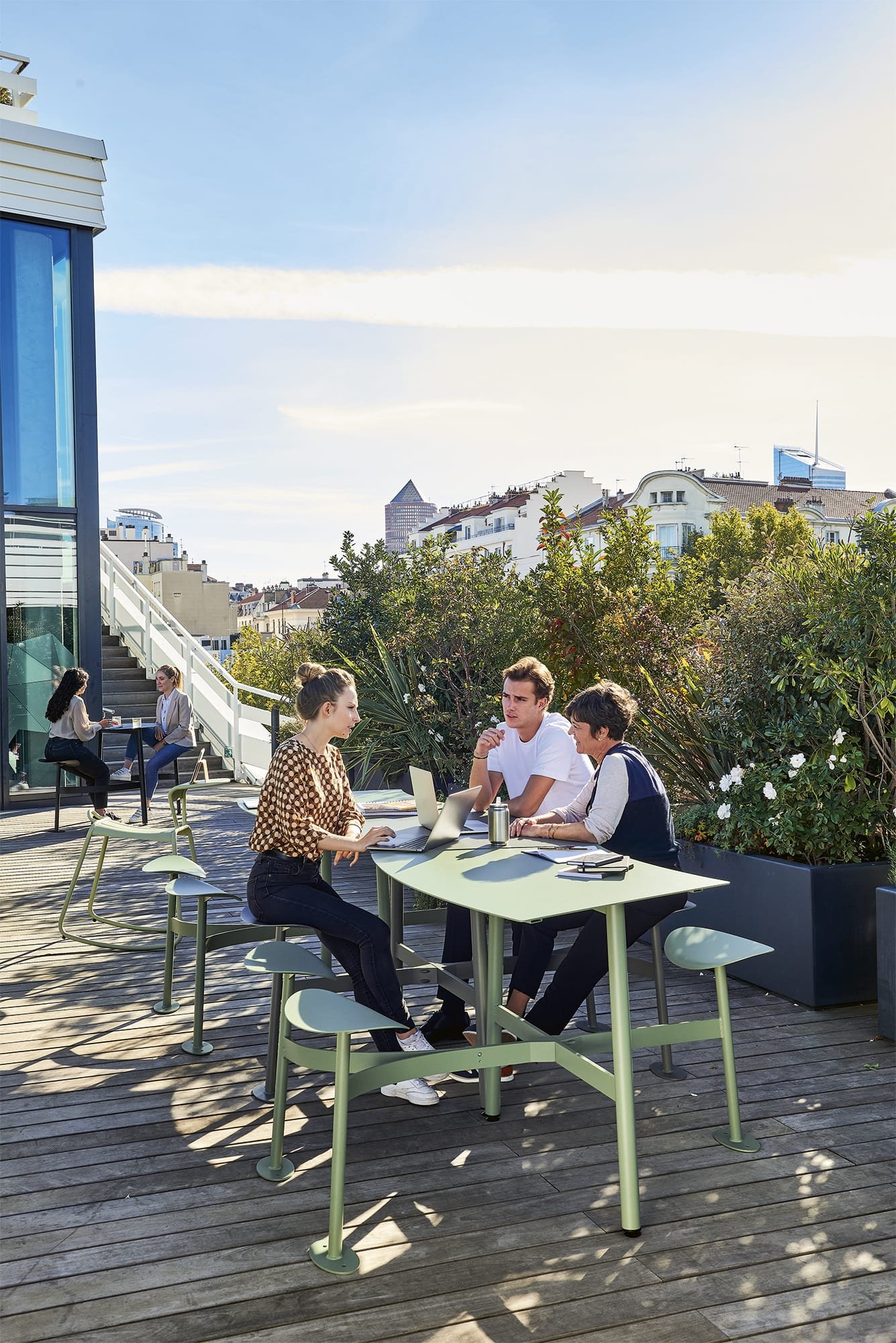 Bolder collectie Fermob weerspiegelt de verschuiving naar een mensgerichte werkomgeving waarin buiten zijn synoniem staat voor welzijn en productiviteit. De collectie nodigt uit tot een andere manier van werken: vrijer, flexibeler en dichter bij de natuur.