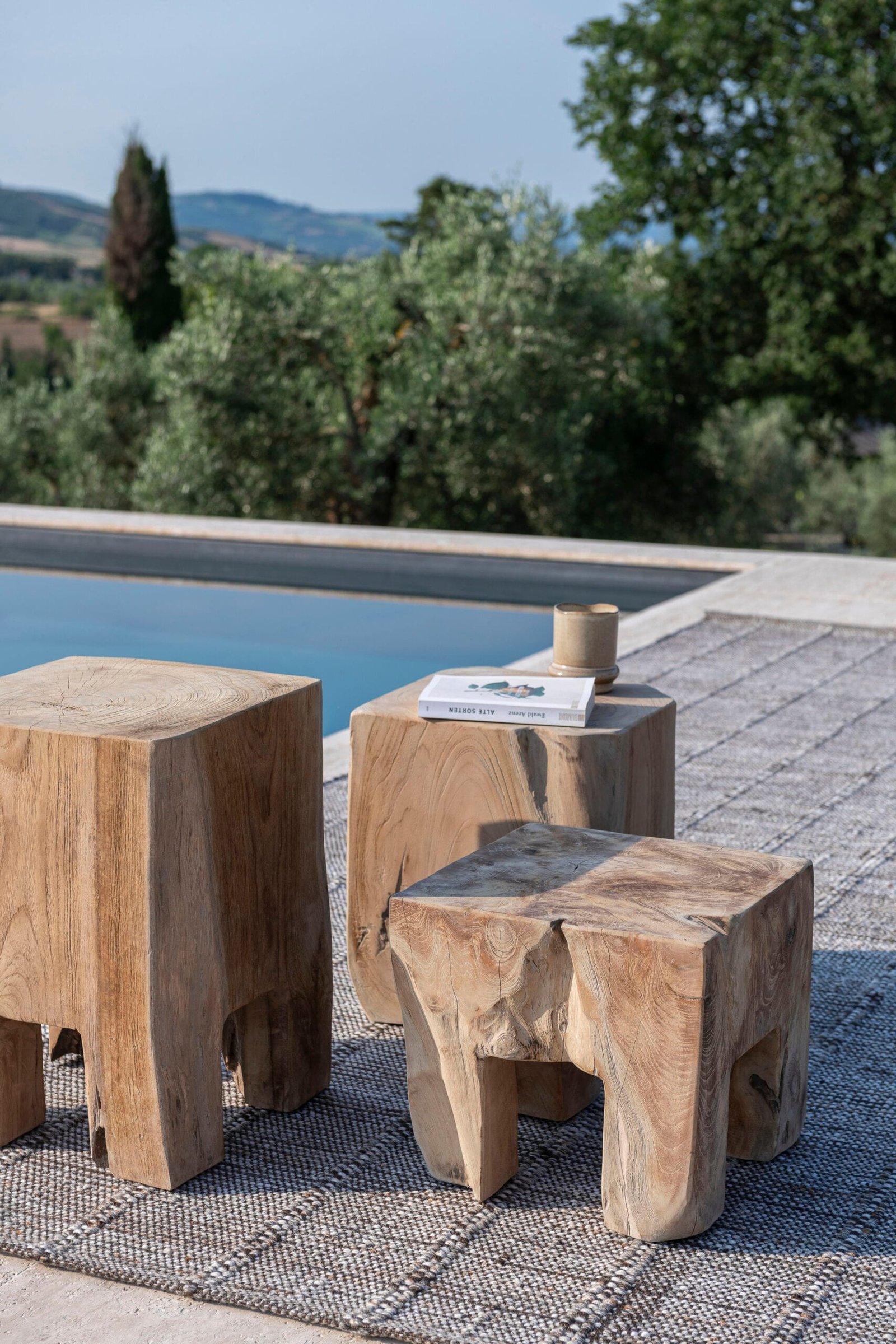 Dankzij zijn duurzame teakhouten wortelstructuur is the Doblo collection Gommaire niet alleen een blikvanger, maar ook bestand tegen de tand des tijds. Deze bijzettafel komt zowel binnen als buiten volledig tot zijn recht — van een stijlvolle loungehoek in de tuin tot een verfijnde zithoek binnen.