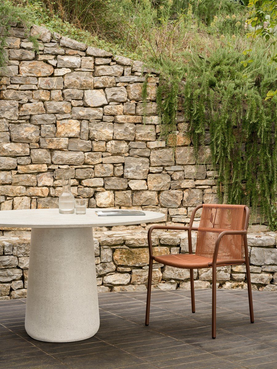 Sweep collectie Vincent Sheppard wordt gekenmerkt door haar elegante aluminium frame, gecombineerd met tactiel, weerbestendig touw. De licht naar buiten gerichte armleuningen geven de stoel een open en uitnodigende vorm, terwijl de minimalistische lijnen zorgen voor een tijdloze uitstraling. Het resultaat is een stoel die visueel licht oogt, maar tegelijk stevig en comfortabel aanvoelt.